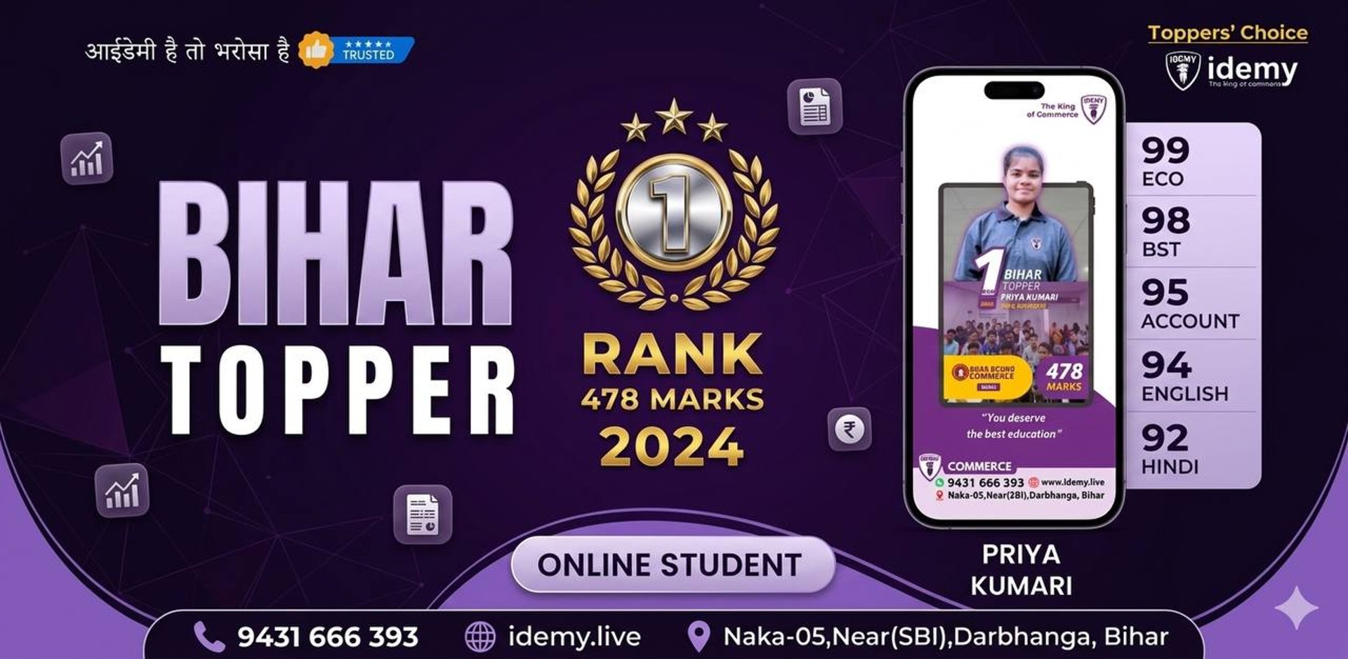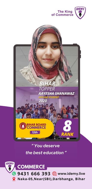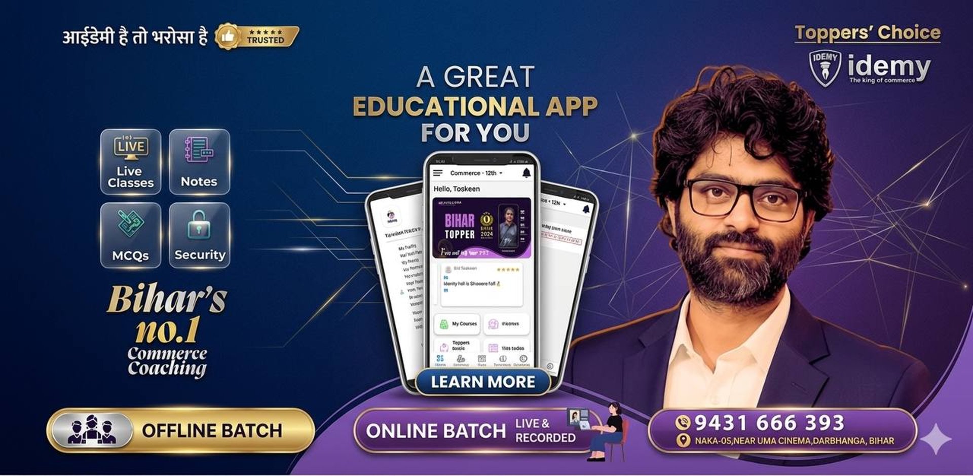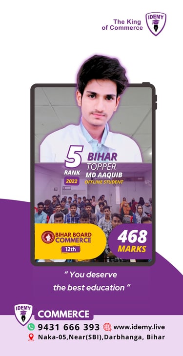 idemy is a premier education platform for Bihar Board Commerce, CUET preparation, and graduation courses, offering expert guidance, interactive learning, and personalized support to ensure student success.